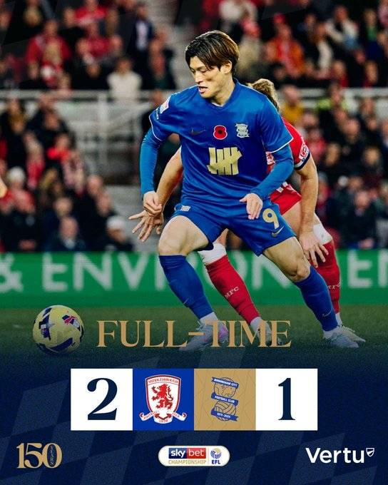 하지만 버밍엄의 균형은 전반 추가 시간에 깨졌다. 미들즈브러의 헤이든 해크니가 아이던 모리스의 슈팅을 깔끔한 플릭으로 마무리하며 역전골을 터뜨렸고 경기는 미들즈브러의 2-1 승리로 끝났다.