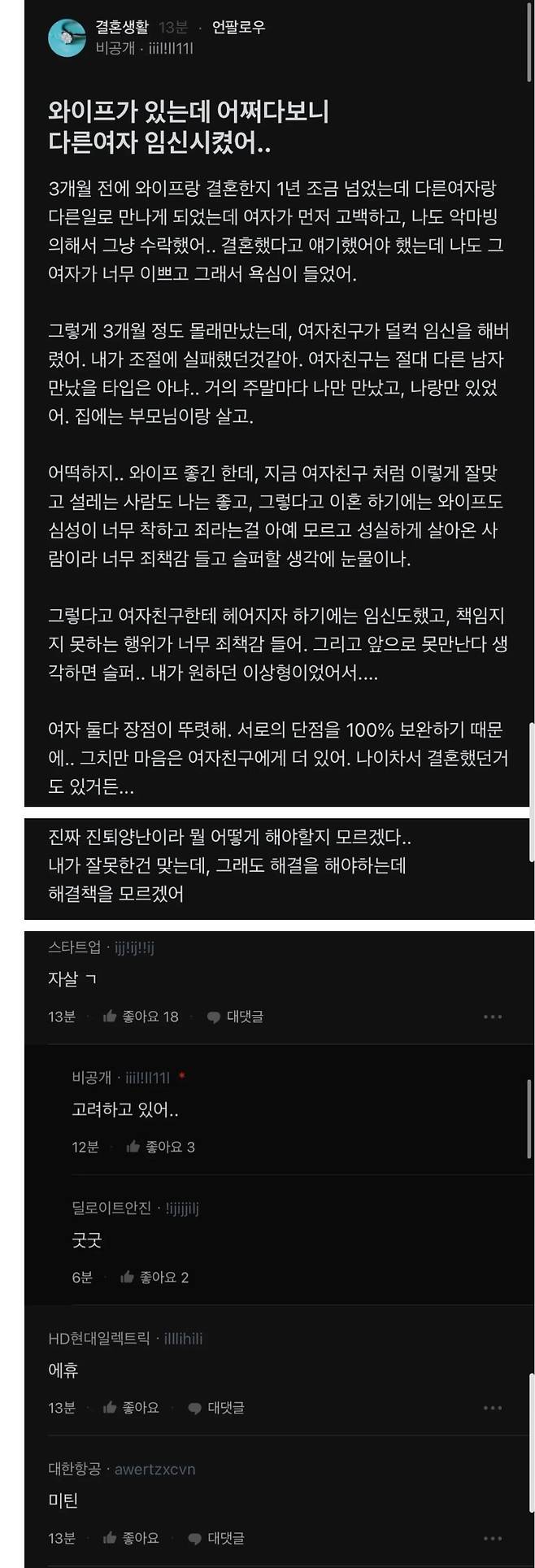 와이프가 있는데 여자친구를 임신 시킨 남자