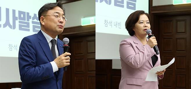 | ▲ 조국혁신당 신장식 정춘생의원 조국혁신당의 신장식 정춘생의원이 국노협 3기 출범식에서 축사를 하고 있다 |