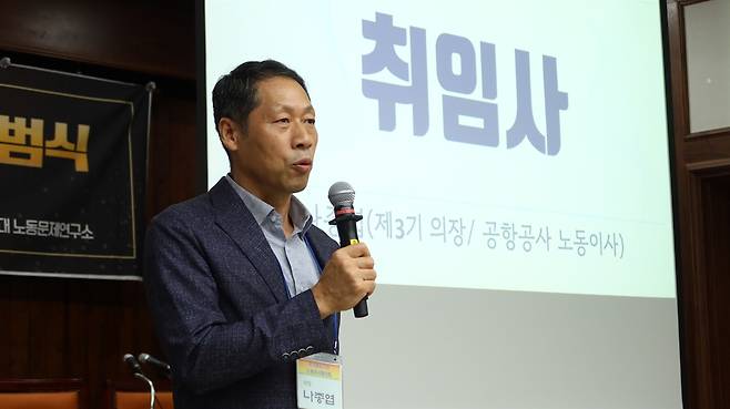 | ▲ 국노협 3기 의장 나종엽(한국공항공사) 국노협 3기 나종엽의장이 취임사를 하고 있다. |