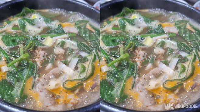 국물은 들깨가루와 깻잎 향이 뒷맛을 잡아줬다. 맑지 않았고, 진득했다. 국밥이라 부르기 민망할 정도로 건더기가 많았다. 국물 한 숟갈에 밥을 말면 무겁지 않게 한 끼가 됐다. 탁하지 않은 기름기, 지나치지 않은 간. 뒷목을 눌러주는 국물 온도가 속을 편하게 만들었다.