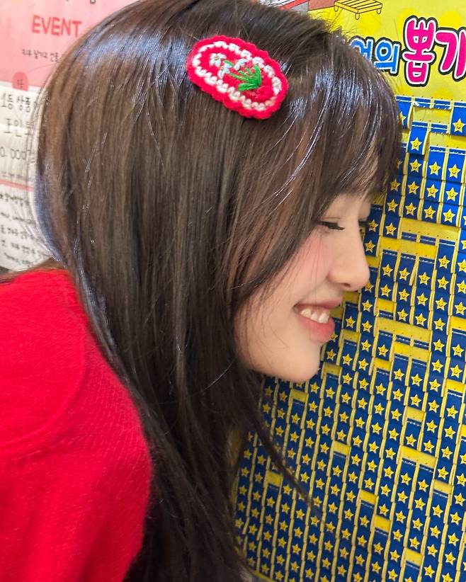자연스럽게 내린 긴 생머리에 키치한 액세서리를 더해 인간 체리 같은 상큼함을 극대화했는데요.