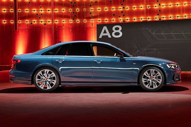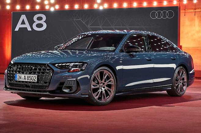 아우디 A8은 전장 5,190mm, 전폭 1,945mm, 전고 1,510mm, 휠베이스 2,998mm의 대형 차체를 자랑한다. 파워트레인은 3.0리터 V6 디젤 싱글터보 엔진이 탑재돼 최고출력 286마력, 최대토크 61.1kg·m를 발휘하며, 복합연비는 11.4km/L다. 고속도로 주행 안정성과 동력 성능을 모두 고려한 세팅이 특징이다.