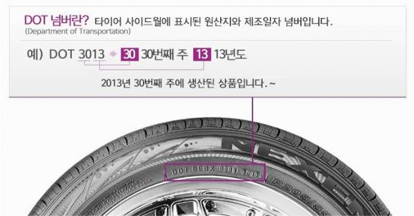 타이어를 교체할 때 생산된 지 오래된 타이어는 피하는 게 좋다. 고무가 경화돼 딱딱해지기 때문이다. 승차감은 물론 접지력이 떨어져 안전에도 위협이 된다. 상대적으로 마모도 빠르다.