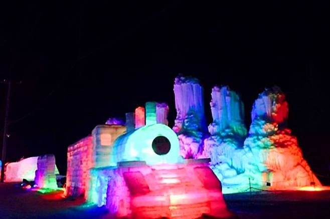 수십 개의 얼음분수가 마치 조각 예술 작품처럼 빛을 반사하며 장관을 이루는데, 낮에는 햇빛과 함께 반짝이는 얼음의 투명함을, 밤에는 조명으로 물든 다채로운 색의 얼음을 감상할 수 있습니다.