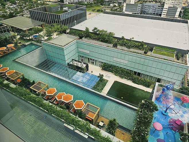 객실 통창 너머로는 회색 도심 경관 속에 바라만 봐도 청량한 워터파크가 숨어 있다. 카바나가 있는 L자형 야외 수영장과 아이들을 위한 키즈 워터파크는 솔레어 리조트 노스의 또 하나의 자랑거리다. 어린이 전용 키즈클럽까지 자리해 가족친화적 공간을 제공한다.