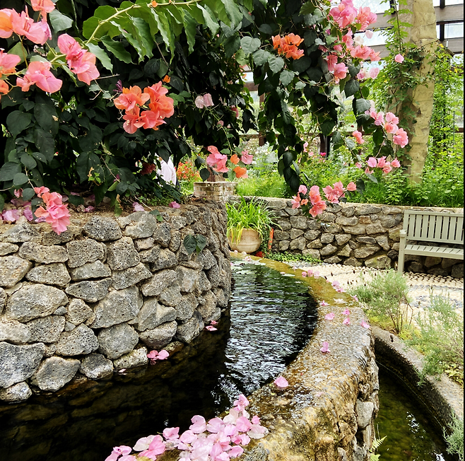 약 374평 규모의 유리 온실 안에 8개의 테마 정원이 마련돼 있어요. 100여 가지 허브와 함께 국내 최고령 300년 된 올리브나무도 직접 볼 수 있답니다! 스페인에서 건너온 올리브나무 덕분에 이곳은 마치 지중해의 정원에 온 듯한 분위기예요.🌿