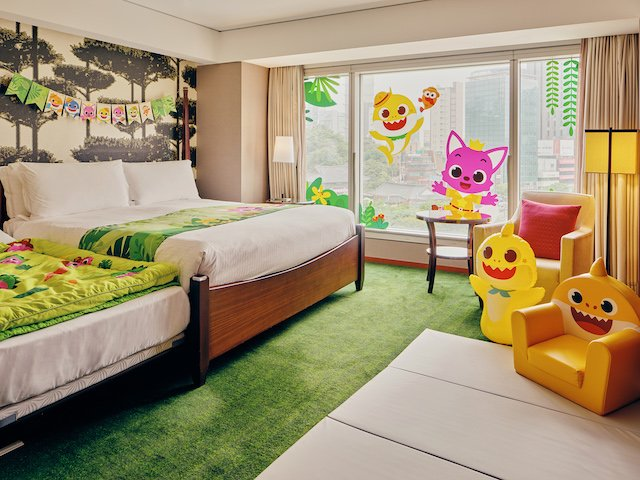 만약 핑크퐁을 좋아하는 아이가 있다면 인터컨티넨탈 서울 코엑스를 추천드려요. 강남에 위치한 이 호텔은 핑크퐁 테마의 객실을 운영하며 아이들에게 큰 사랑을 받고 있답니다. 객실에는 핑크퐁 캐릭터가 가득하여 침구류부터 어린이 소파, 장난감까지 아이들이 좋아할 만한 요소들이 가득해요. 여기에 캐릭터 어메니티와 한정판 체험 키트까지 제공되어 특별한 경험을 선사합니다.