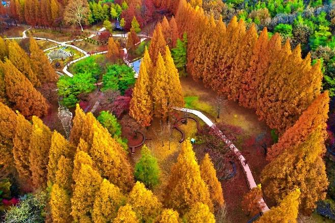 이 시기에 산을 오르는 대신 편안한 산책로에서 가을을 만끽할 수 있는 메타세쿼이아 명소를 찾아보는 건 어떨까.