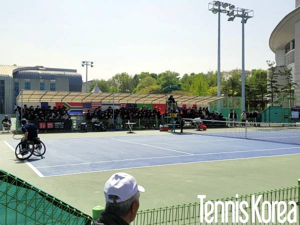 한편 12일 경기장에는 환일고등학교 학생들이 체험학습 방문해 휠체어테니스 선수들의 경기 모습을 관전했다. 학생들은 신체적 장애를 무릅쓰고 경기하는 선수들의 모습을 보며 감탄사를 쏟아 냈다.
