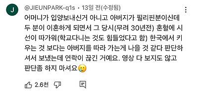 영상 다 봐서 부연설명 하자면 아들이 7살때 필리핀을 갔는데 그때는 자기가 그냥 미국 2주정도 놀러? 가는 줄 알았다고 함