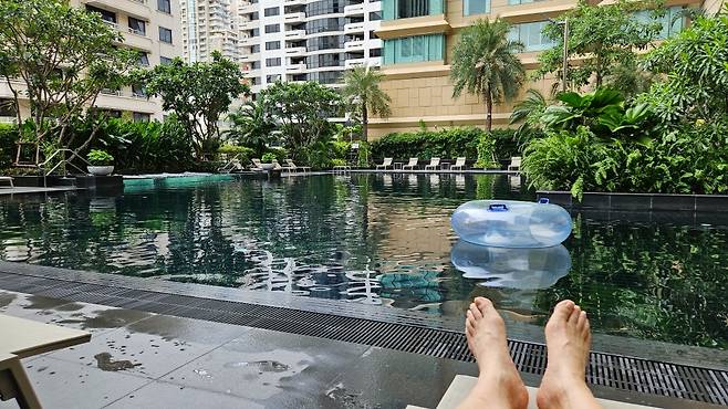 방콕에서의 마지막 날은 호캉스와 쇼핑 데이로 정했습니다. 호텔 조식 후 수영을 한 다음 사우나에서 몸을 풀어봅니다. 수영장과 사우나는 이용객이 거의 없어 여유롭게 즐길 수 있었습니다.
