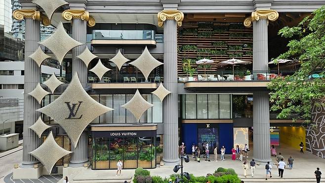 체크아웃 시간이 되어 체크아웃 후 캐리어 보관 서비스를 이용하여 짐을 맡긴 다음 짜뚜짝 주말시장으로 이동했습니다. 칫롬역으로 가서 BTS를 타고 짜뚜짝 주말시장이 있는 머칫역에서 내렸습니다. 가는 길에 에라완 사당을 지나는데 불교 행사가 있는지 인파로 붐볐습니다. 옆에 있는 쇼핑몰의 루이 비통 매장에도 사람들이 줄을 서 있습니다.