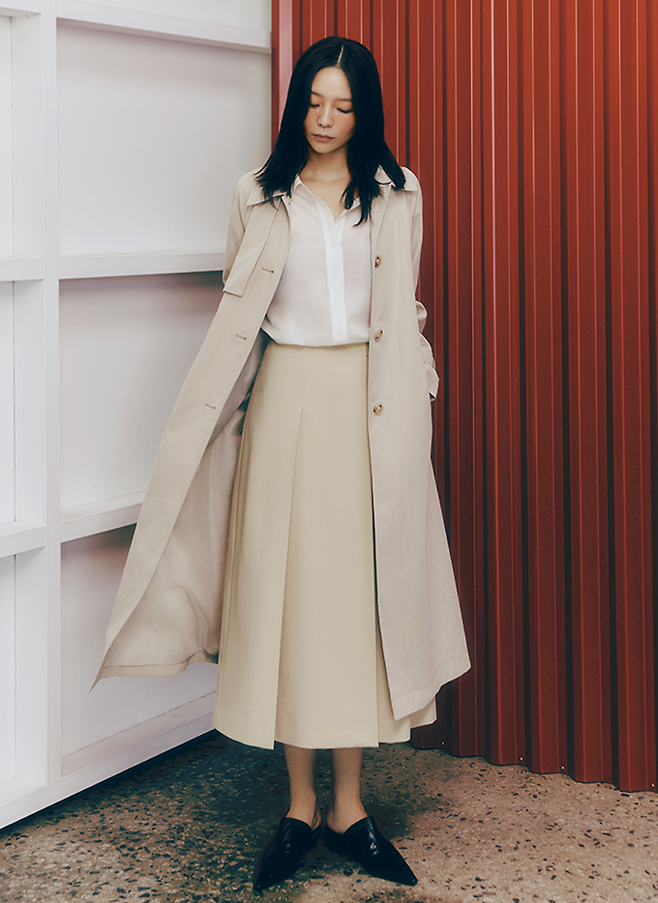 모던 컨템포러리 브랜드 '쉬즈미스' 플랩 디자인의 클래식한 트렌치 코트룩 '인기폭발'