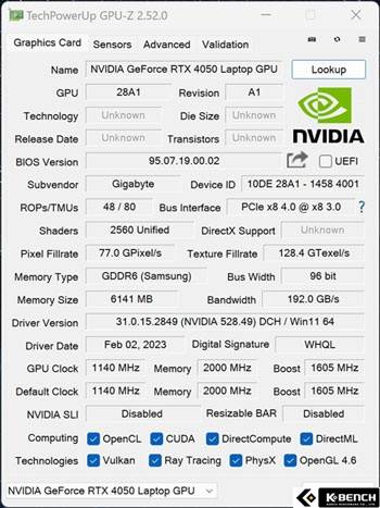 이 외장 GPU 또한 최신 RTX 40시리즈의 지포스 RTX 4050 GPU가 탑재되어 있는 모습이다.
