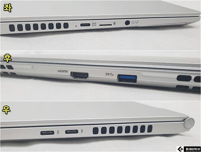 포트 부분을 살펴보면, 다른 노트북들과 다른 부분이 있다. 후면을 포함해 3면을 모두 활용한다는 부분이다.