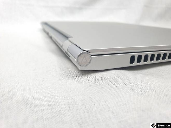 AERO 제품 특유의 디자인은 제품 곳곳에서 살펴볼 수 있는데, 작은 힌지 부분의 사이드에 AERO 특유의 디자인 로고로 마감되어 있어 사소한 디자인 하나하나 모두 챙겨놓은 모습을 볼 수 있다.