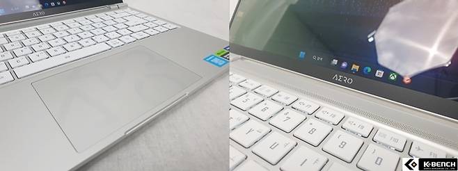 또, 노트북을 열게되면 나오는 터치패드 부분도 AERO 로고가 제공되고, 시야각에 따라 은은하게 색상이 바뀌는 디자인도 적용해 상당히 매력적인 외형 모습을 채택했다.