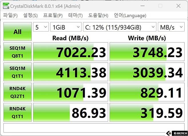 스토리지 성능은 확실히 PCIe 4.0 기반의 1TB SSD로서 뛰어난 모습을 보여주기 때문에 크리에이티브한 작업을 하더라도 부족함이 없을 것으로 보여진다.