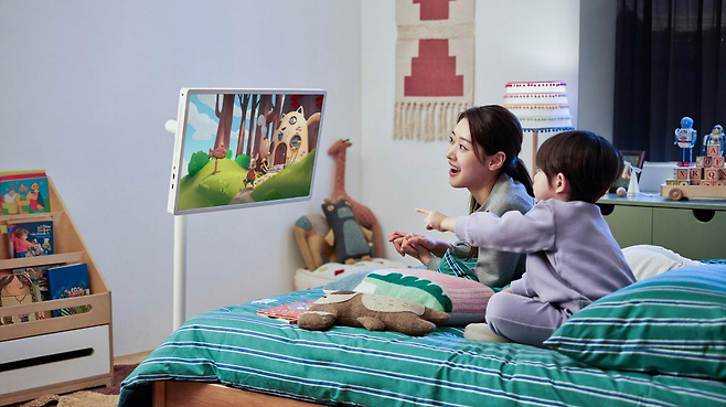 특히 아이들이 직접 그린 그림을 배경 화면으로 띄워 벽걸이 액자로 활용할 수 있는 기능은 창의력 발달과 정서적 만족도를 높이는 데도 도움이 될 수 있다. 또한, 가족이 함께 영화를 감상하거나, 터치 기능을 활용해 게임을 하거나, 노래방 앱을 연결해 홈 노래방을 즐기는 등 부모와 아이가 함께하는 다양한 엔터테인먼트 기능도 활용할 수 있다.