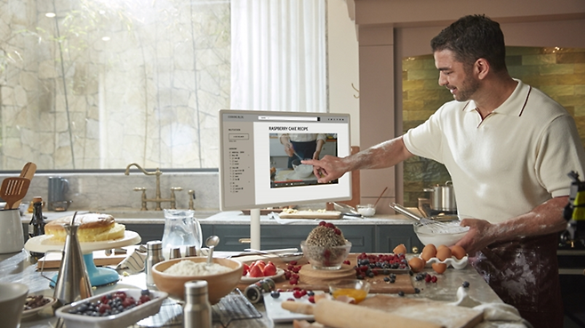 기존 TV는 주방에 배치하기 어려운 경우가 많고, 태블릿이나 스마트폰은 화면이 작아 불편할 수 있다. 스탠바이미2는 주방 식탁이나 조리대 근처로 옮겨서, 대형 화면으로 레시피를 보며 요리할 수 있다는 점이 장점이다.