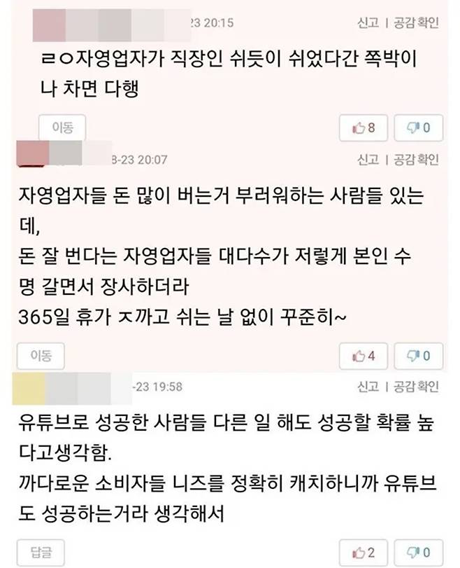 자영업을 시작하려면 막연한 생각만으로 어림도 없다. 업계 종사자를 만나고, 주말에 짬을 내서 관심 직종과 연관된 아르바이트를 해 보고, 유명 자영업자가 쓴 책, 유튜브를 보면서 현실 감각을 기를 필요가 있다. 하지만 막상 이 모든 방법을 실천에 옮기는 사람은 고작 5퍼센트도 되지 않는다고 한다. 그렇기에 회사가 마음에 들지 않는다고 충동적으로 자영업을 선택하는 것을 경계할 필요가 있다.