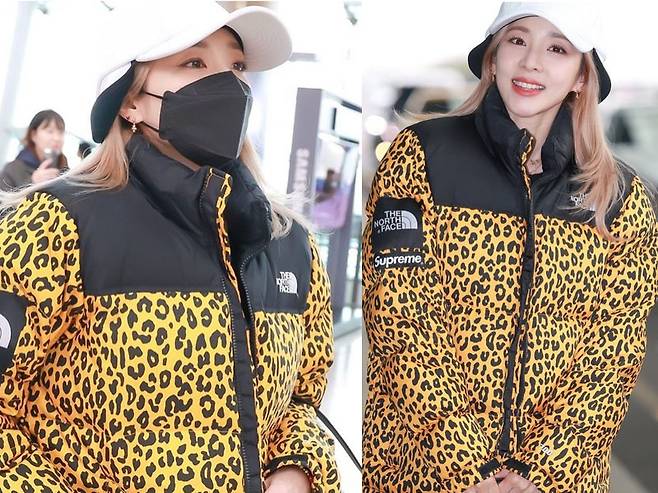 산다라박은 호피 무늬 패딩을 착용해 추위를 이겨낼 강렬한 패션을 선보였습니다. 또, 산다라박은 와이드 슬랙스를 착용해 우아한 분위기를 자아냈습니다. 특히 산다라박은 뒤통수와 귀를 덮는 캡 모자를 착용해 패셔너블하면서도 따뜻한 코디를 완성했습니다.