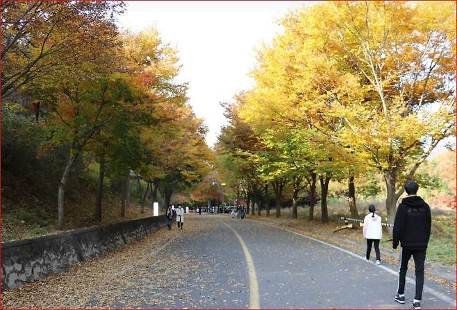 가을이 되면 장령산자연휴양림은 붉은 단풍과 노란 은행잎으로 산 전체가 빛에 잠깁니다. 치유의 숲길을 따라 걸으면 단풍잎이 바람에 흩날리며 발끝을 물들이고, 산허리마다 붉고 노란 색채가 번져 하루 종일 머물고 싶을 만큼 황홀한 풍경을 보여줍니다.