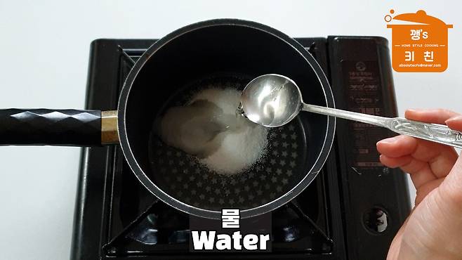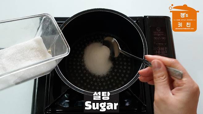 5. 냄비에 설탕 3큰술, 물 2큰술 넣고