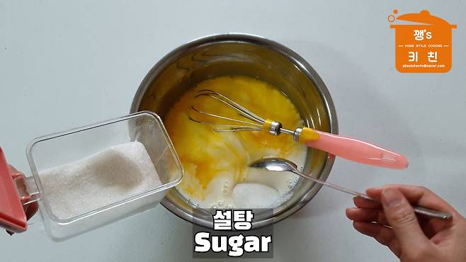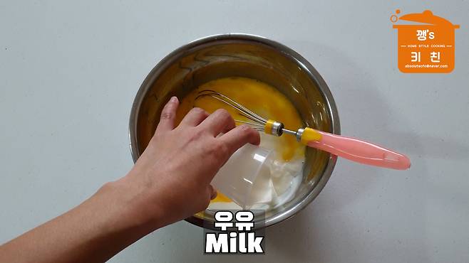 계란, 우유 2컵, 설탕 4T, 거품기,