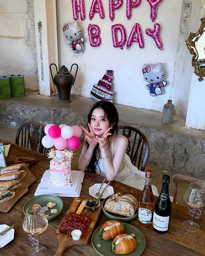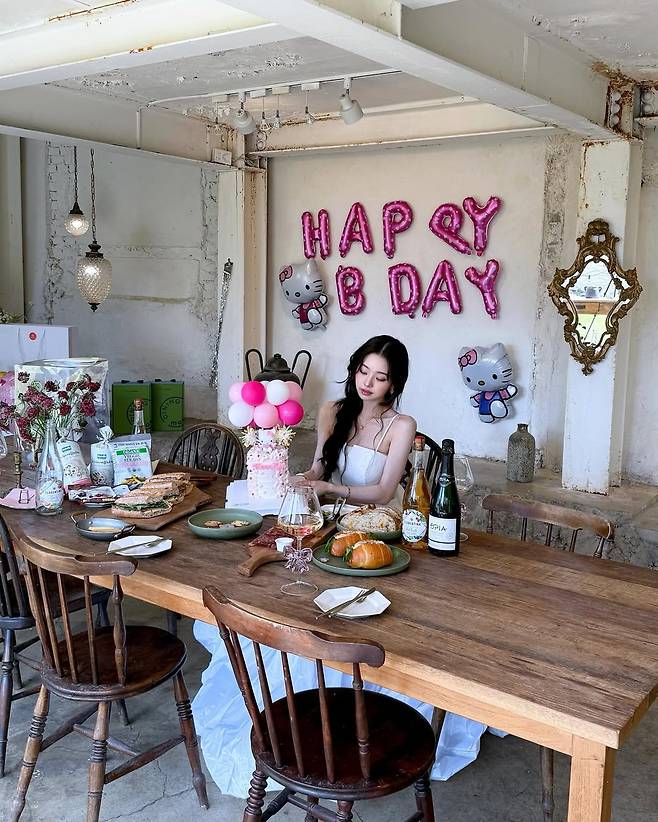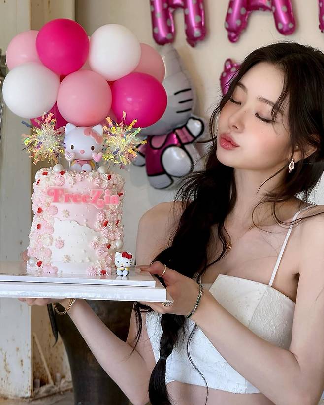 화려한 데코와 사랑스러운 케이크, 그보다 더 눈에 띄는 건 바로 프리지아 본인의 비현실적인 비주얼이었다.