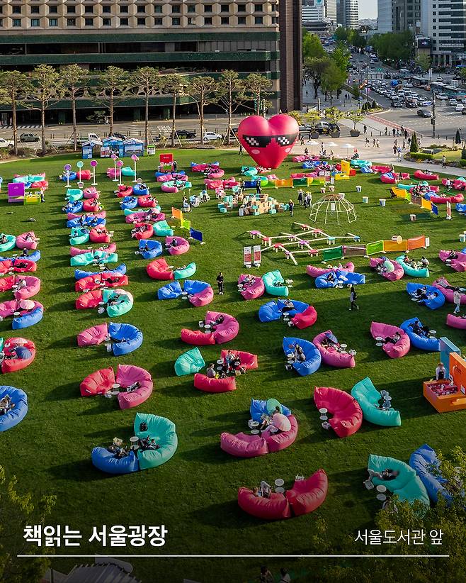 폼앤폼(Form&Foam) 벤치, 서울색 소반 등 '펀(fun)디자인' 소품들로 꾸며져 실제로 보면 더 예쁜 청계천 야외도서관이에요!🥰