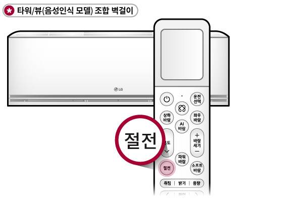 냉방 운전이 시작되면 절전 버튼을 누르세요. 리모컨에 **'냉방과 절전'**이 나타나고 절전 냉방 운전을 시작합니다.