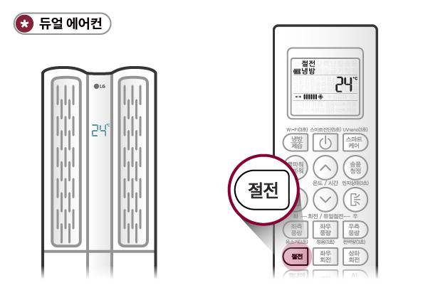 듀얼 에어컨의 경우 독립 절전 기능을 활용할 수 있습니다.