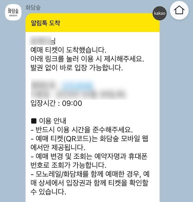 그리고 이용 당일에 입장 가능한 QR코드가 도착하면 티켓 발권 없이 입구에서 제시 후 입장하면 됩니다.