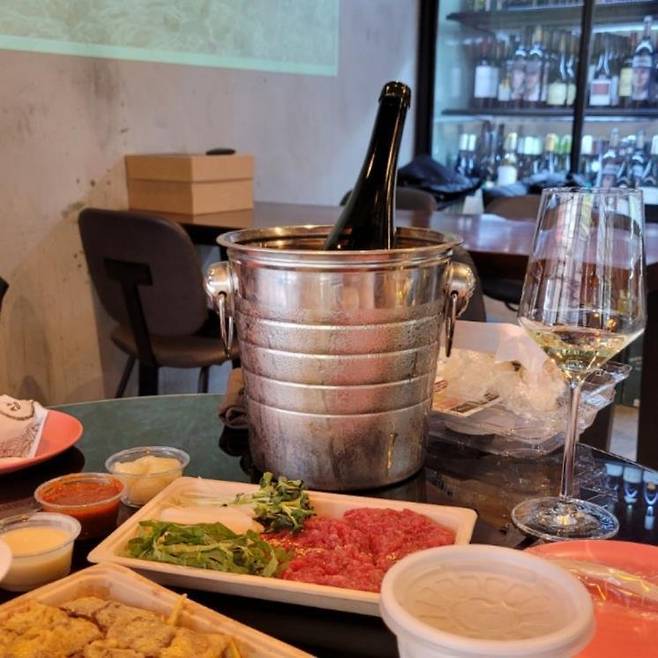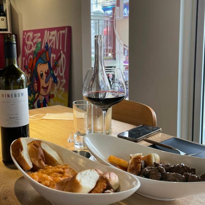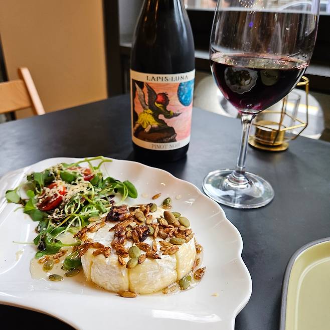 다른 평점은 몰라도 네이버는 꽤 신뢰성이 있는 것 같다. 이 와인바에 4.91이라는 높은 평점을 매겼으니까. 100석이 넘는 탁 트인 공간, 200가지가 넘는 와인 선택지, 선택이 어려운 이들을 위한 셀프 시음바까지. 와인을 잘 몰라도 그 풍미와 시간을 충만히 즐길 수 있게 돕는 친절한 와인바다. ‘방탄소년단 정국이 즐겨 마시는 와인’ 같이 귀여운 설명을 읽는 소소한 즐거움도 있고. 외부음식 뿐 아니라 콜키지로 원하는 와인을 가져와 즐길 수도 있으니 자유로운 분위기에서 프라이빗하게 와인을 즐겨보는 건 어떨까?
