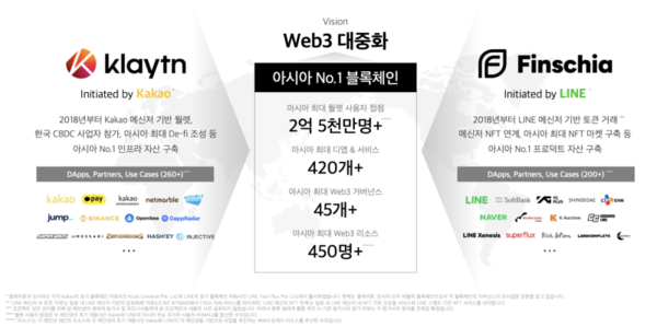 카카오 태생 블록체인 플랫폼인 클레이튼(Klaytn)이 네이버 계열사 라인의 블록체인 플랫폼 핀시아(Finschia)와 통합한 후 발행하는 프로젝트 드래곤(Project Dragon) 토큰을 업비트와 코인베이스 등 대형 거래소에 상장을 추진할 의지를 드러냈다. 핀시아 홀더(보유자)들에게 에어드랍(무료보상)을 지급하기로 하고, 통합비율은 유지해 클레이튼 홀더들의 반발을 불식시키는 등 양 재단은 '서로가 원하는 통합'이라는 뜻을 시사하고 있다.