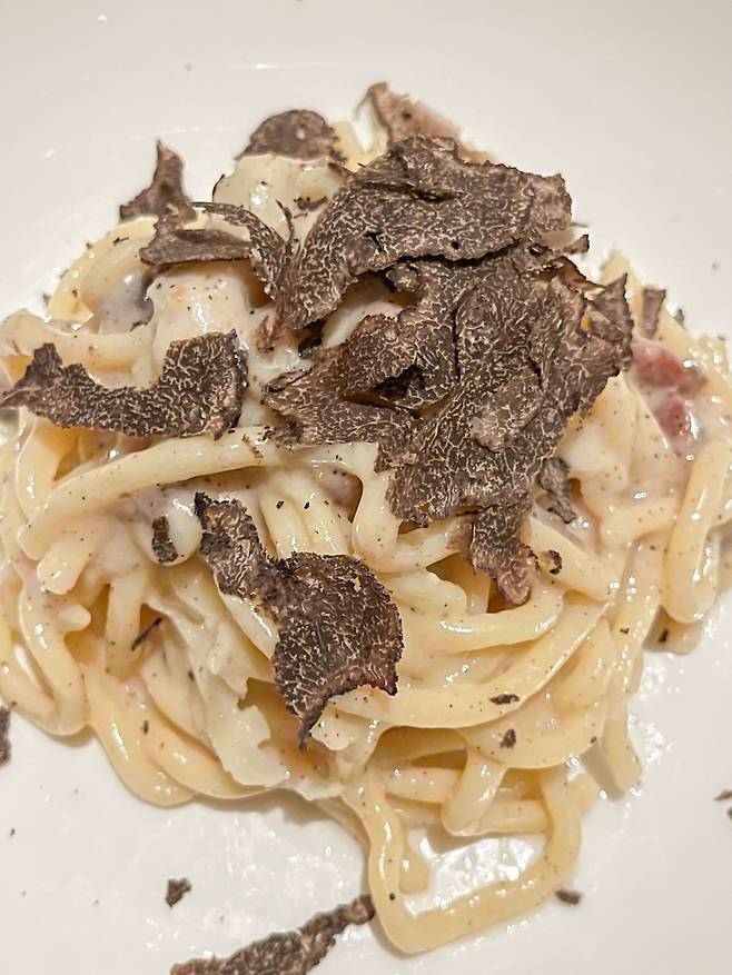 나의 음식 여행 하이라이트 두 가지를 꼽자면 바로 피오렌티나(Fiorentina) 스테이크와 트뤼플 파스타. 피오렌티나는 이탈리아 토스카나 지방 음식으로 흔한 티본 스테이크 같지만, 1kg을 주문할 수 있는 으른~이 된 것 같은 뿌듯함 그리고 현지 분위기에 취해 말이 필요 없을 정도로 맛있었다. 이번에 무려 두 번이나 먹었던 음식이다.