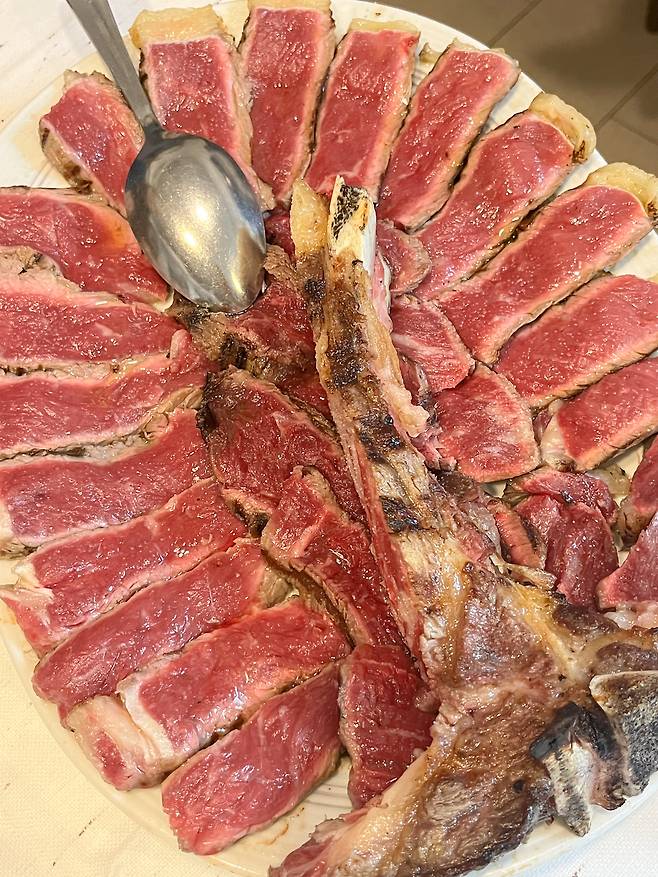 나의 음식 여행 하이라이트 두 가지를 꼽자면 바로 피오렌티나(Fiorentina) 스테이크와 트뤼플 파스타. 피오렌티나는 이탈리아 토스카나 지방 음식으로 흔한 티본 스테이크 같지만, 1kg을 주문할 수 있는 으른~이 된 것 같은 뿌듯함 그리고 현지 분위기에 취해 말이 필요 없을 정도로 맛있었다. 이번에 무려 두 번이나 먹었던 음식이다.