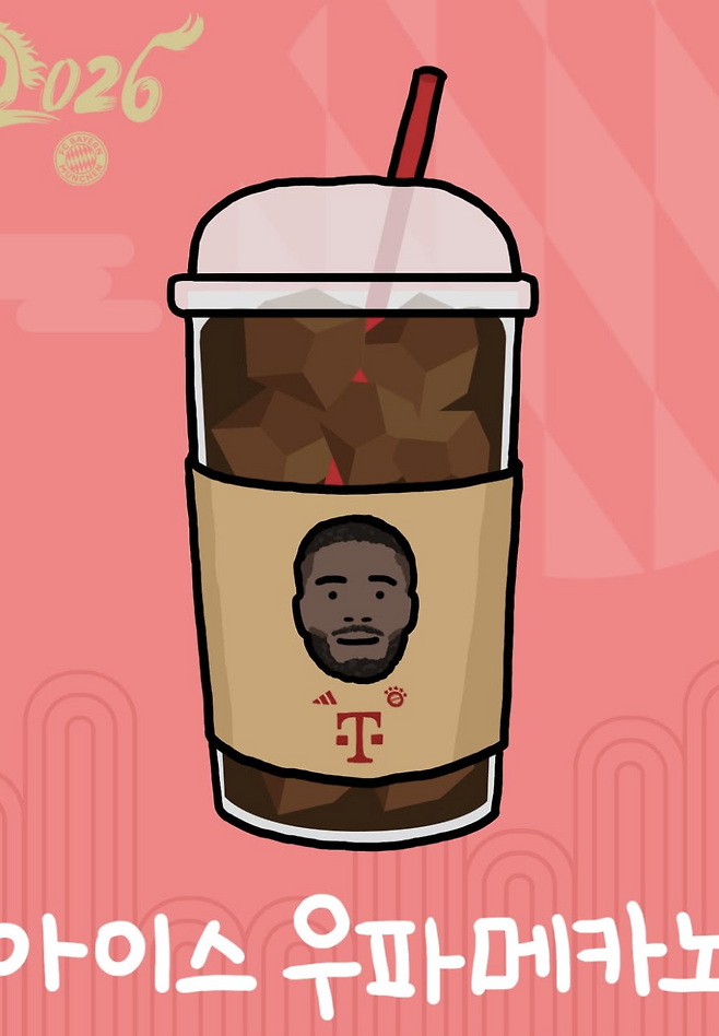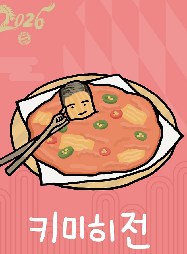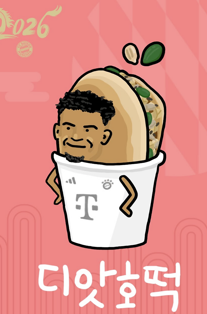 공식 계정에 올라온 것은 ‘떡민재국’이라며 떡국 안에서 피로를 풀고 있는 김민재 캐릭터 그림이었다. 이어 ‘아이스 우파메카노’, ‘타국’, ‘디앗호떡’, ‘키미히전’까지 바이에른 뮌헨 선수들의 캐릭터와 한국 음식이 소개돼 폭소를 자아냈다.