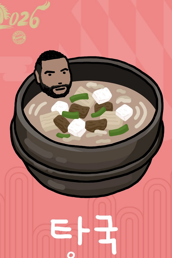 [스포티비뉴스=박대성 기자] 김민재(29, 바이에른 뮌헨)가 ‘떡국’으로 나타났다. 민족 대명절 설날에 맞춰 업로드 된 바이에른 뮌헨 계정에 한국 축구 팬들이 함박 웃음이다.