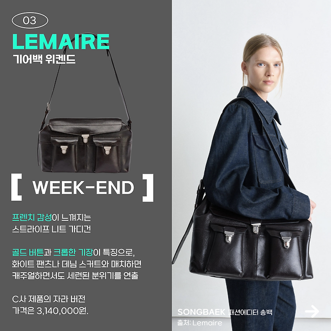르메르의 기어 백 위켄드는