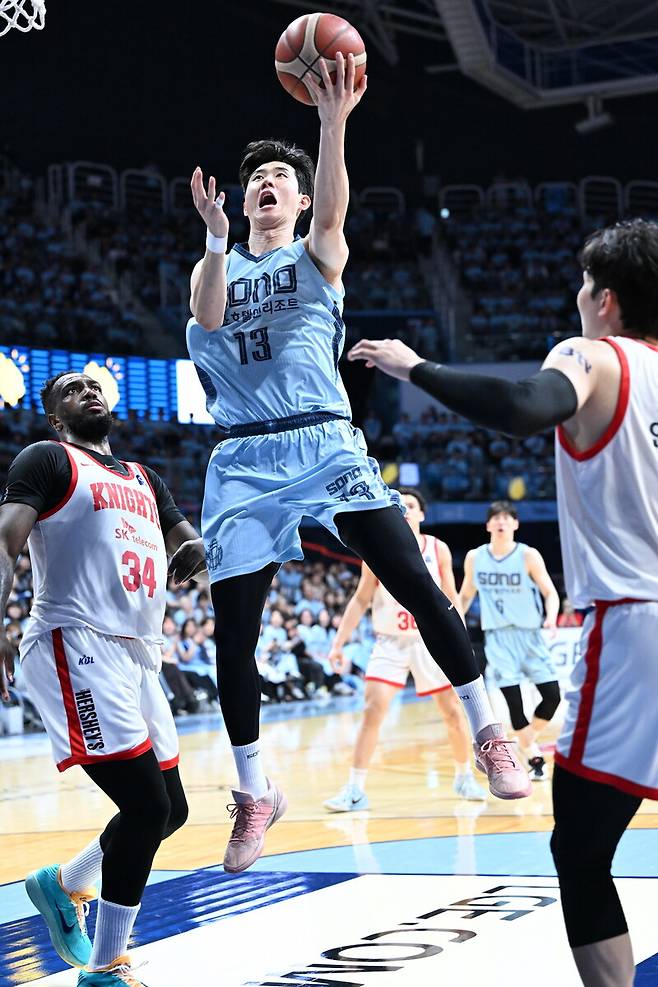 이정현(188cm, G), 케빈 켐바오(195cm, F), 네이던 나이트(202cm, C)로 이어지는 삼각편대의 위력은 여전했다. 그러나 이번 시리즈에서 눈에 띈 건 벤치 자원들의 활약이다. 소노는 시즌 내내 약점으로 지적됐던 부분을 지워갔다.