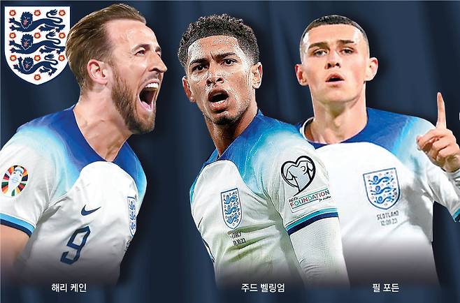 '삼사자 군단' 잉글랜드 축구대표팀은 해리 케인(바이에른 뮌헨), 주드 벨링엄(레알 마드리드), 필 포든(맨체스터시티)이 이끄는 '트로이카' 공격 라인이 역대 최강급으로 평가받고 있어 우승 가능성이 어느 때보다 높은 것으로 예측되고 있다.
