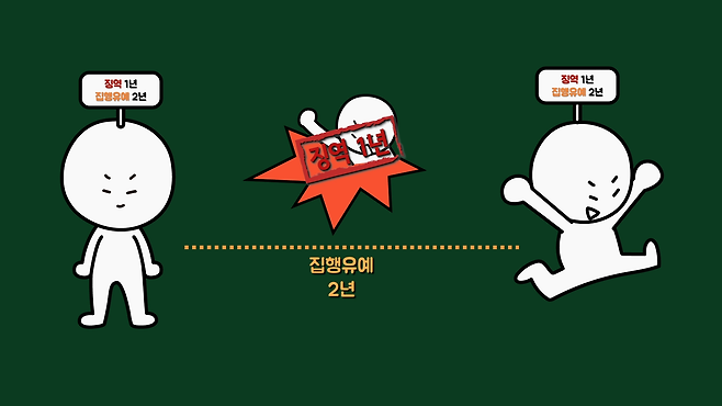 또 많은 사람이 헷갈리는 게 집행유예에 관한 내용입니다. 뉴스를 보면 '징역 1년에 집행유예 2년을 선고한다'와 같은 판결을 자주 볼 수 있습니다. 여기서 집행유예는 2년까지 형의 집행을 유예하고, 그 기간 안에 법적인 문제를 일으키면 앞의 징역 1년의 형을 집행하겠다는 의미입니다.