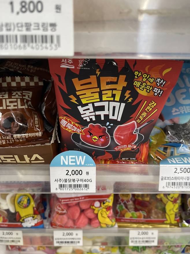 서주 불닭 볶구미는 매운맛을 강조한 젤리 스낵으로, 불닭볶음면의 강렬한 풍미를 재현한 제품이에요.