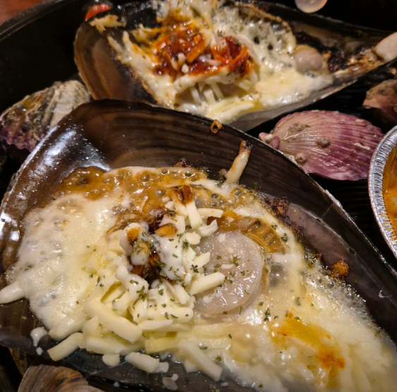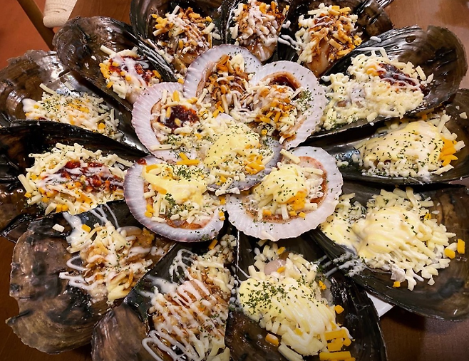▶ 치즈조개구이: 가리비 위에 치즈를 올려 고소함을 더한 인기 메뉴