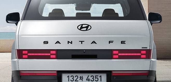 • 현행 5세대 싼타페: H자형 DRL, 박시한 디자인, 후면부 논란