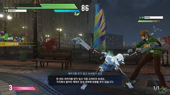 타이밍이 굉장히 어려워 상대가 불시에 내미는 공격을 전부 저스트 패리로 받아내는 건 인간의 레벨이 아니지만, 상대와 기본기 공방을 주고받는 과정에서 상대의 버릇을 파악하고 해당 타이밍에 패리를 하는 식으로 저스트 패리 성공률을 높일 수는 있습니다.