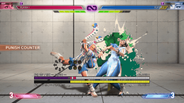전작의 V리버설과 비슷하지만, 캐릭터마다 성능도 다르고 무적 시간도 제각각이라 쓰기 어려웠던 걸 생각하면 굉장히 직관적인 반격기가 되었다고 할 수 있습니다. 하지만 약 기본기를 막고 사용하면 가드/패리/저스트 패리 등에 막히거나 점프로 회피 당하면 아프게 반격당할 수 있어서 잘 보고 사용하는 것이 좋습니다.